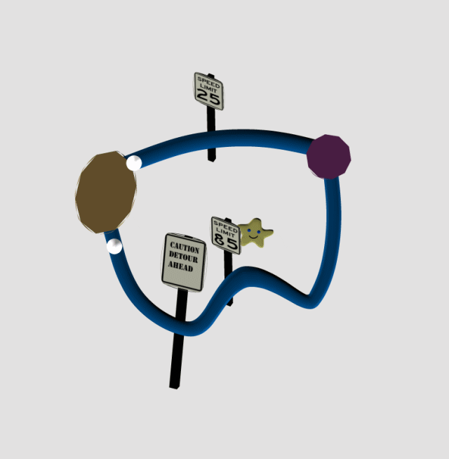 We’re looking at two axonal paths between a pair of brain nuclei. Thought waves bounce back and forth between the nuclei at a speed which is CONTROLLED TO SYNC THE RESONANCE. Happystar appropriately represents a glial traffic cop.