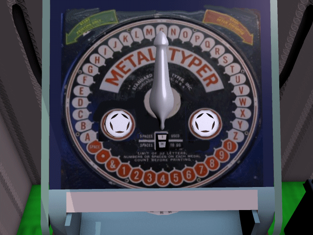 You inserted a coin, turned the control crank to each letter in your message, pulled the left lever to engrave each letter, then pulled the right lever to dispense the medallion when done. The message around the edge was limited to 32 characters, so you needed to plan ahead.